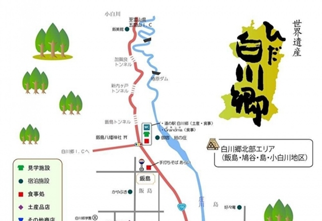 白川郷バスターミナルから南に歩いて3分の場所になります。
