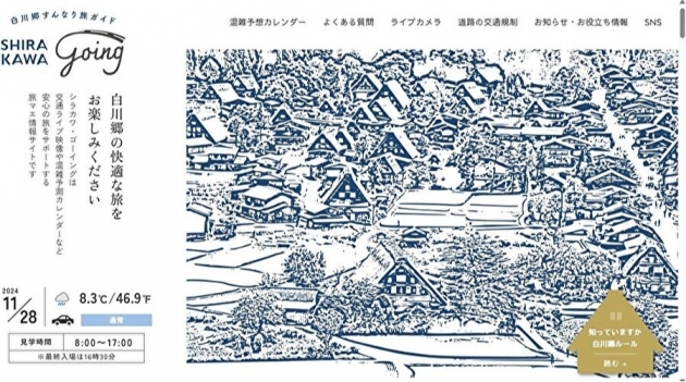 【白川村公式】車の混雑予想カレンダーや渋滞をリアルタイムに見れる旅 情報サイト「白川郷すんなり旅ガイド シラカワ・ゴーイング(SHIRAKAWA-Going)」を公開