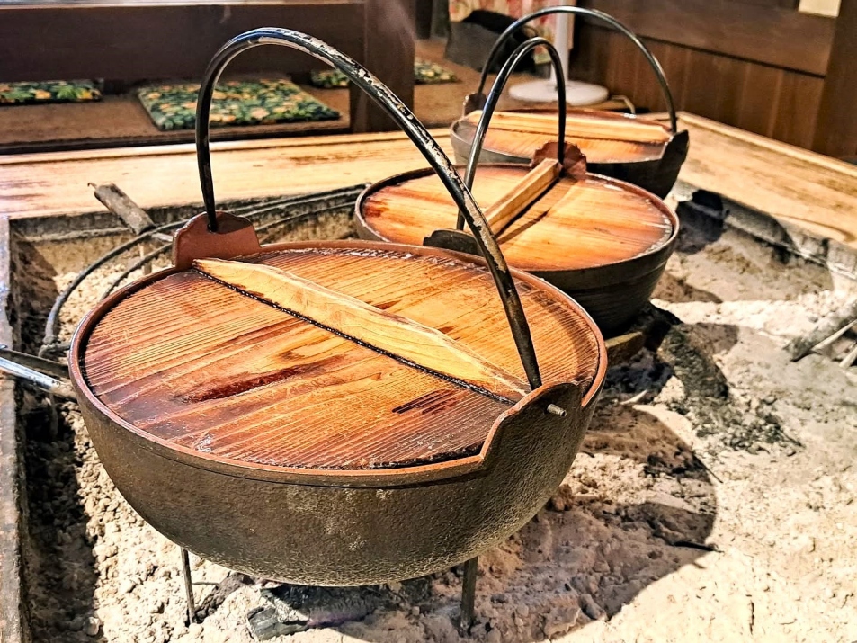 ぜんざいは囲炉裏の鍋からセルフサービスで楽しめ、甘さ控えめの味わいが好評です。