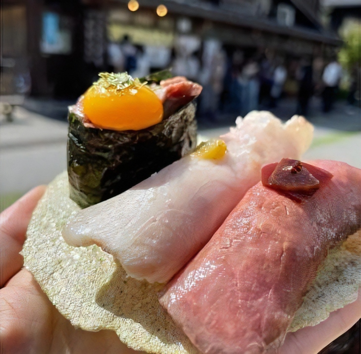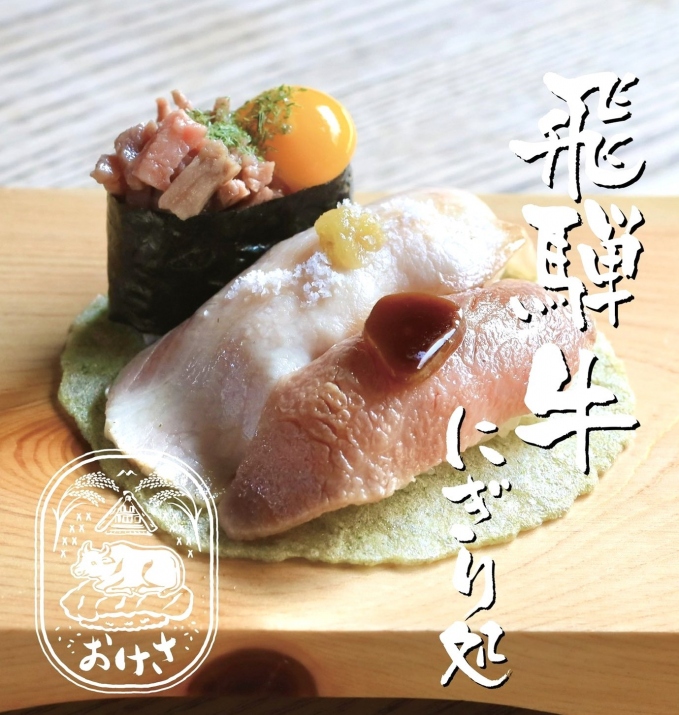 白川郷結旨豚は、白川郷でとれたお米を使った“白川郷結旨豚にぎり”や飛騨牛のにぎり、