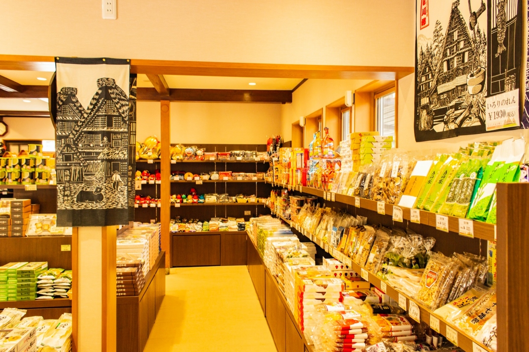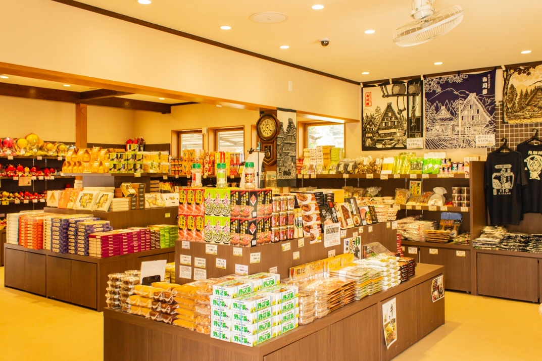 白川郷の特産品、飛騨の民芸品や地酒など様々なお土産を販売しております。