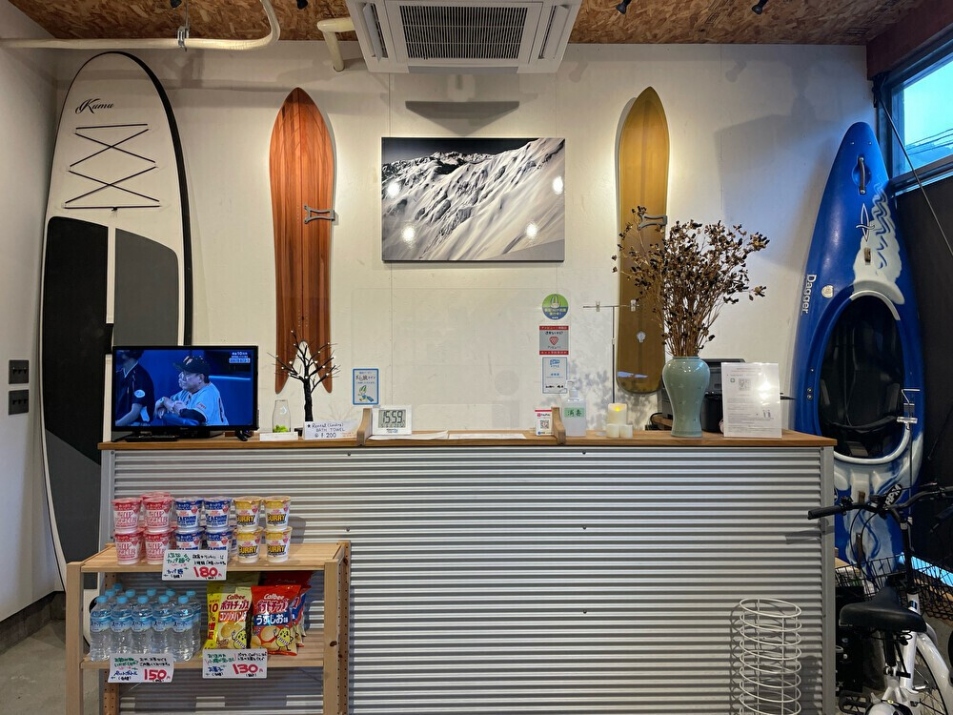 ・ツインルーム4部屋とシングルルーム1部屋をご用意しております。全部屋、鍵付き。 フェイスタオル、TV、エアコン、ハンガー(扉横)は備え付けがございます。(バスタオルはレンタル¥200です) ・フェイスタオル、TV、エアコン、ハンガー(扉横)、暗証番号の鍵付き(全部屋) |