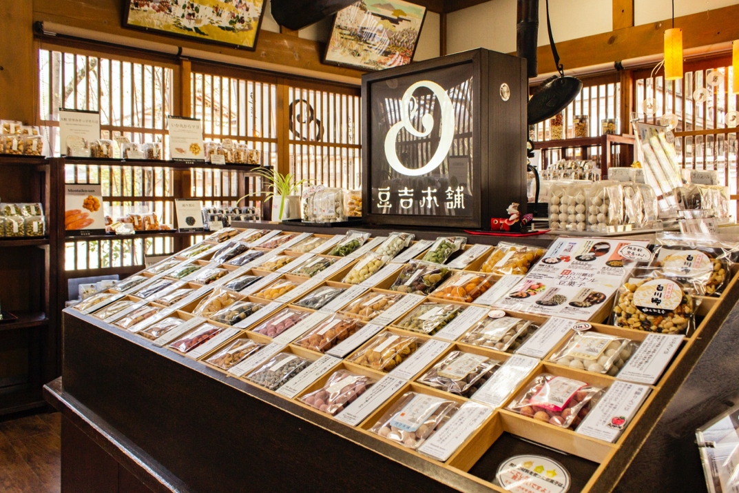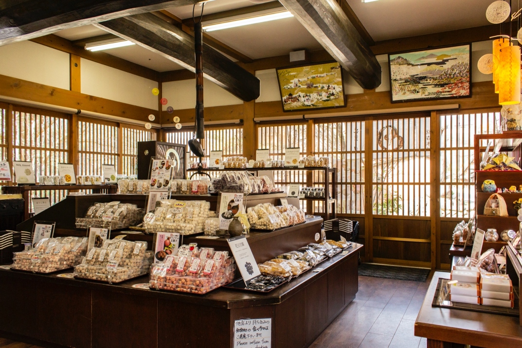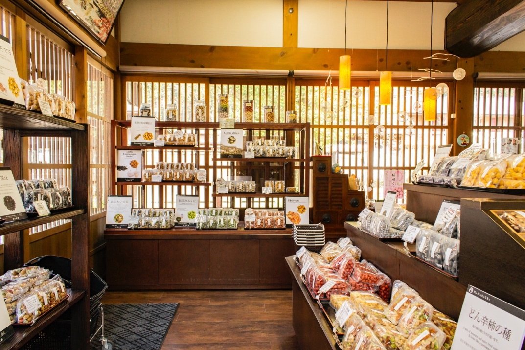 Various bean confectionery, including Hida pickles and local specialties products. We have many souvenirs unique to Shirakawa-go. Our bean confectionery using seasonal ingredients from Hida, seasonal beans. There are many type from sweet beans to spicy beans. Various types such as red turnip and magnolia miso from Hidayama Ajiya. Our original folk craft Kinu Temari", which has "Sarubobo" inside the silk ball.