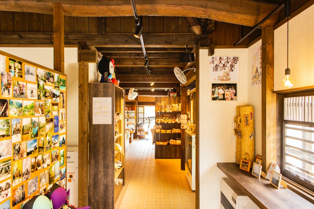 合掌集落せせらぎ公園駐車場内にある土産店。白川郷特産品、オリジナル商品、飛騨の民芸品、地酒など数多くのお土産を扱っております。また。「ISO14001」を取得し、環境対策を重視し、サービス向上を図っております。