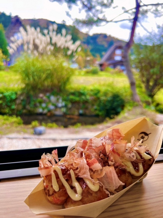 合掌造りを見ながらご賞味下さい。