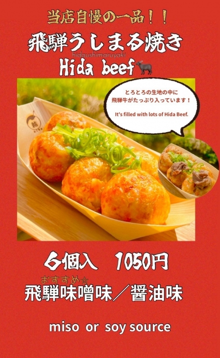 飛騨牛丸焼き。おすすめは味噌味です。